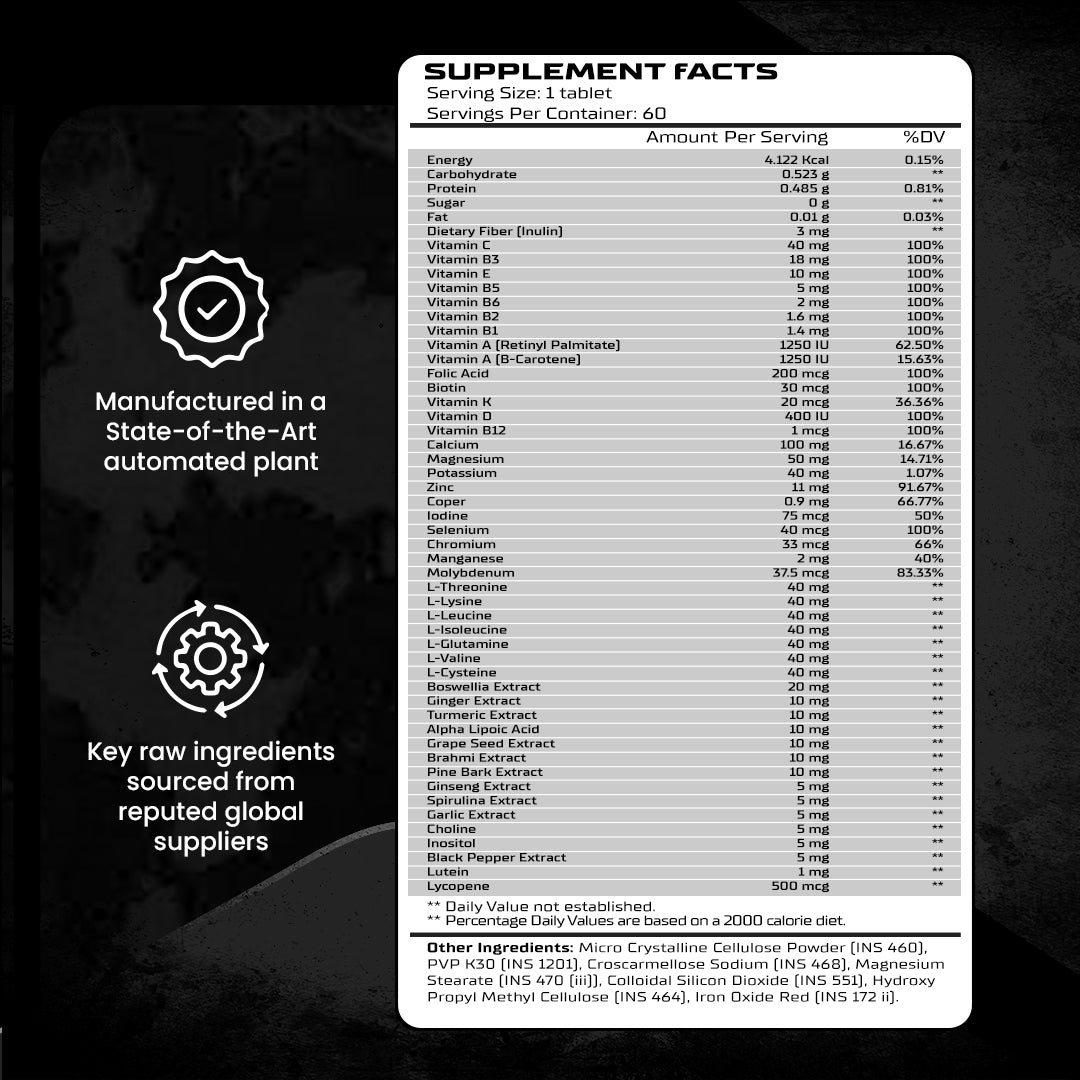 - Look no further than Absolute Nutrition Nutrishots Multivitamin Tablets, meticulously crafted to provide you with the essential micronutrients your body needs to thrive.