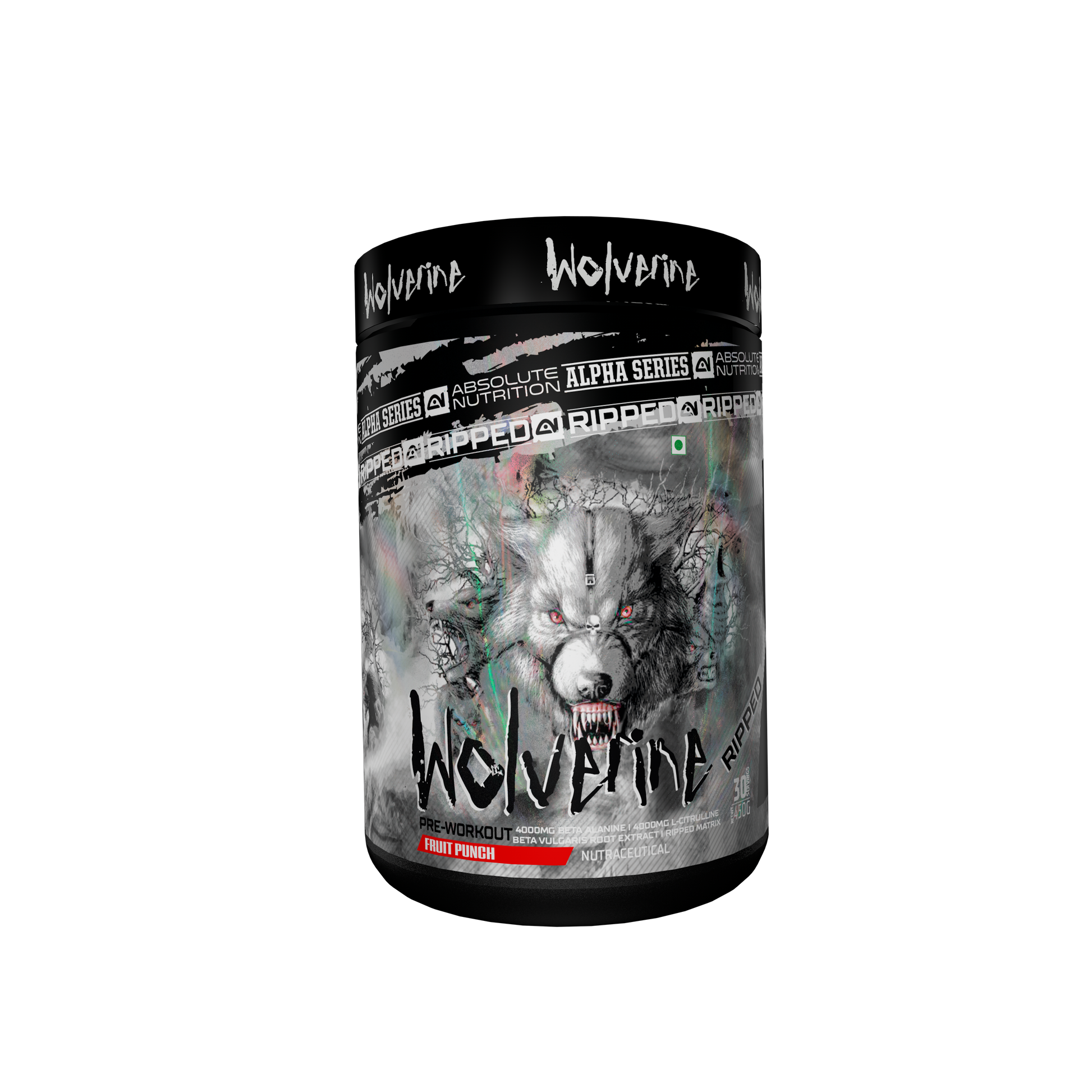 - Pre Workout Ripped Wolverine 450gms in Fruit Punch is a high-energy boosting pre workout supplement with unbeatable outcomes. It contains 4000mg Beta Alanine, 400mg L-Carnitine, L-Arginine, Creatine; L- Citrulline and Betaine making it an explosive sports workout supplement.