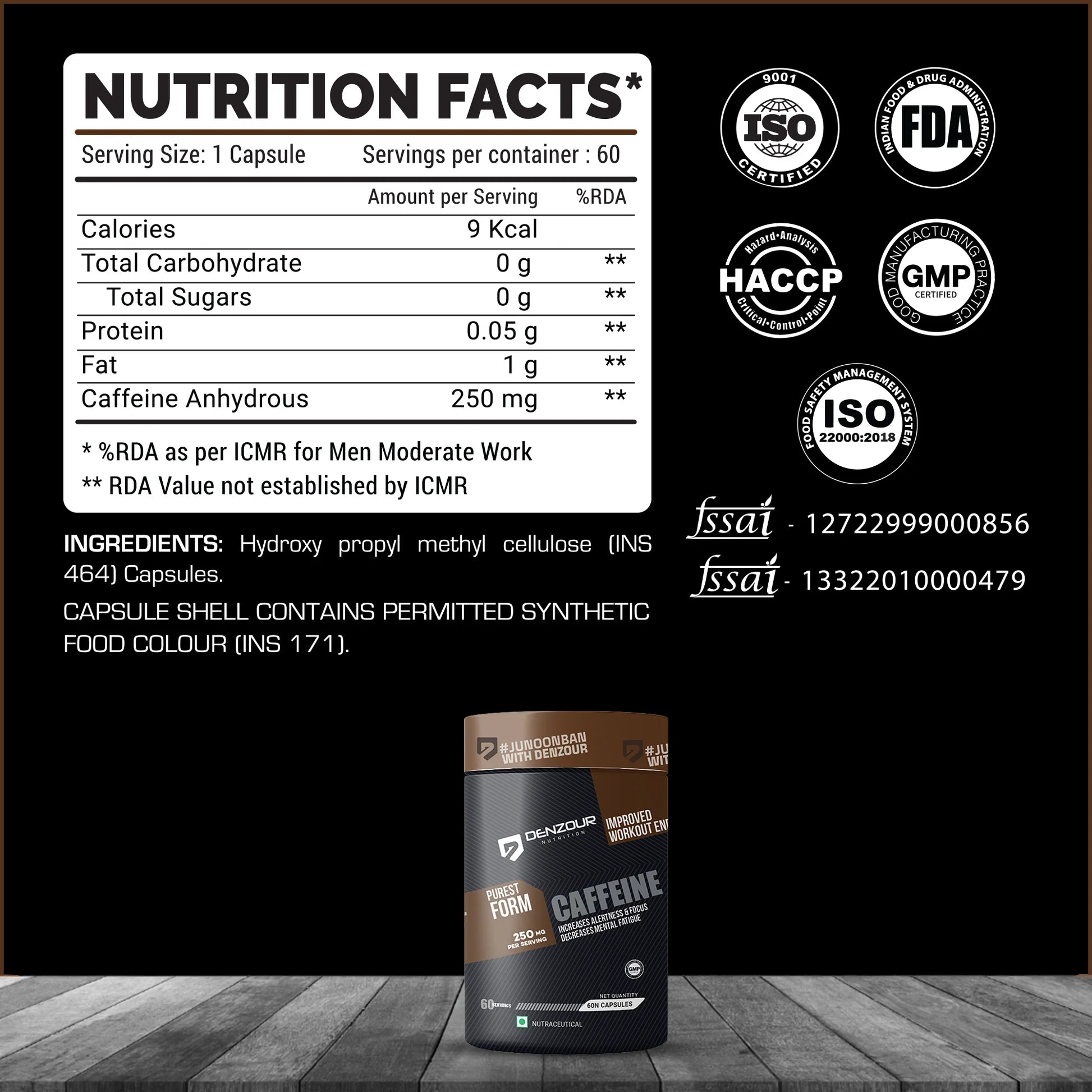 Denzour Caffeine is formulated to deliver 250mg of Caffeine