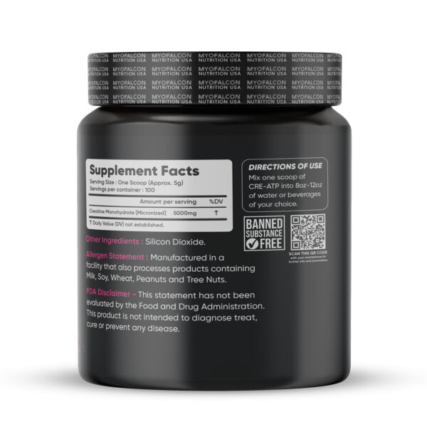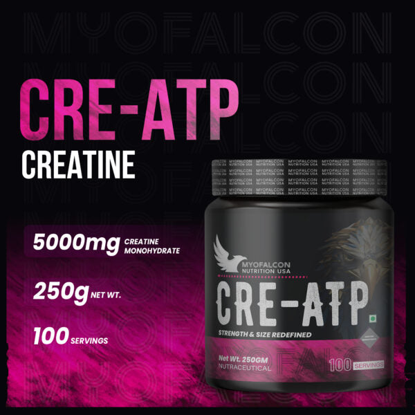 and recovery. Gluten-free and easy to mix, MyoFalcon CRE-ATP Creatine helps you push through intense workouts, build lean muscle, and achieve peak performance like never before.