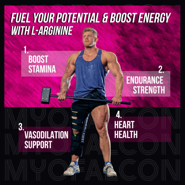 MyoFalcon L-Arginine is your go-to supplement for enhancing blood flow, endurance, and muscle performance. Formulated with high-quality L-Arginine, this advanced product supports nitric oxide production, promoting better circulation and improved oxygen delivery to your muscles. Perfect for workouts and recovery, MyoFalcon L-Arginine helps you achieve peak performance and take your fitness journey to the next level.
