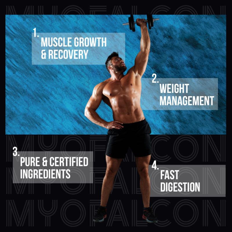 amazing, and delivers exceptional results. Packed with pure, clean, and high-quality protein, MyoFalcon Whey Protein Isolate fuels your energy needs and supports optimal muscle